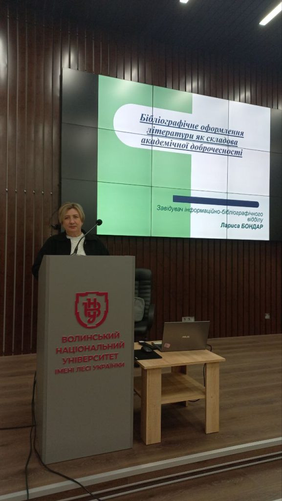 Лариса Бондар наголосила, що правильне оформлення бібліографії не лише демонструє повагу до праці інших авторів, а й є невід’ємним елементом академічної доброчесності, на якому ґрунтується довіра до результатів досліджень.