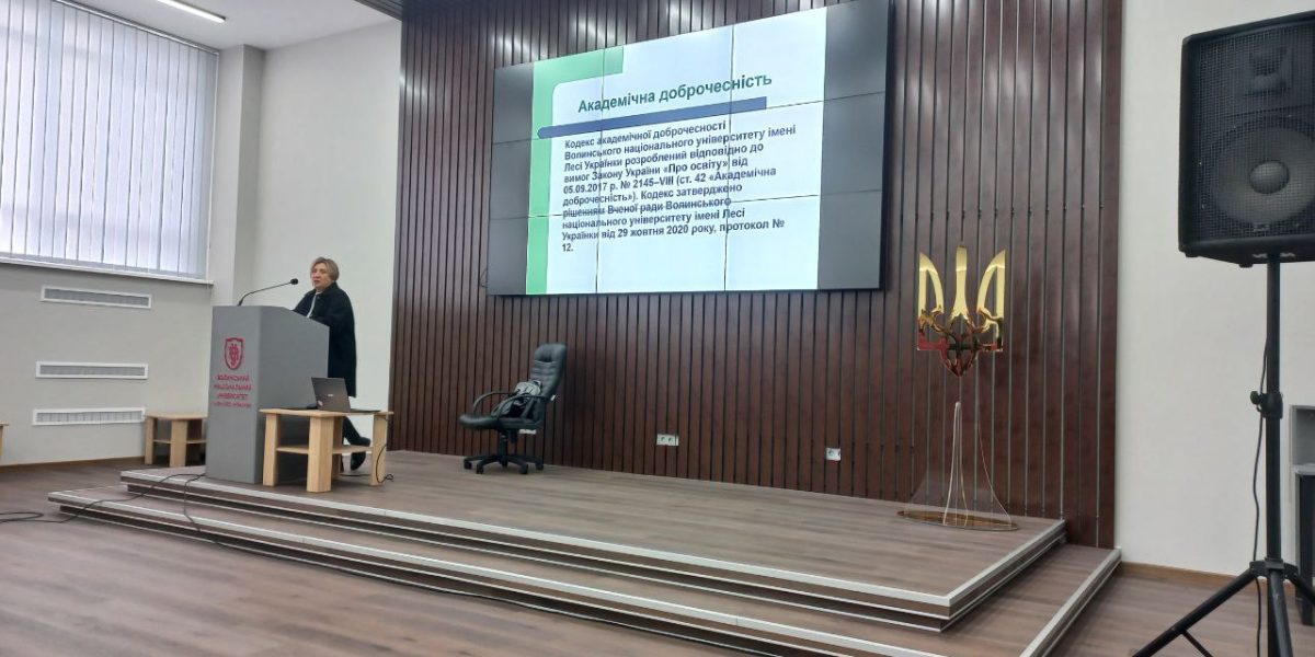 У межах Тижня академічної доброчесності в університеті відбувся тематичний захід на запрошення факультету економіки та управління. Для студентів і викладачів факультету виступила завідувачка інформаційно-бібліографічного відділу університетської бібліотеки Лариса Бондар.
